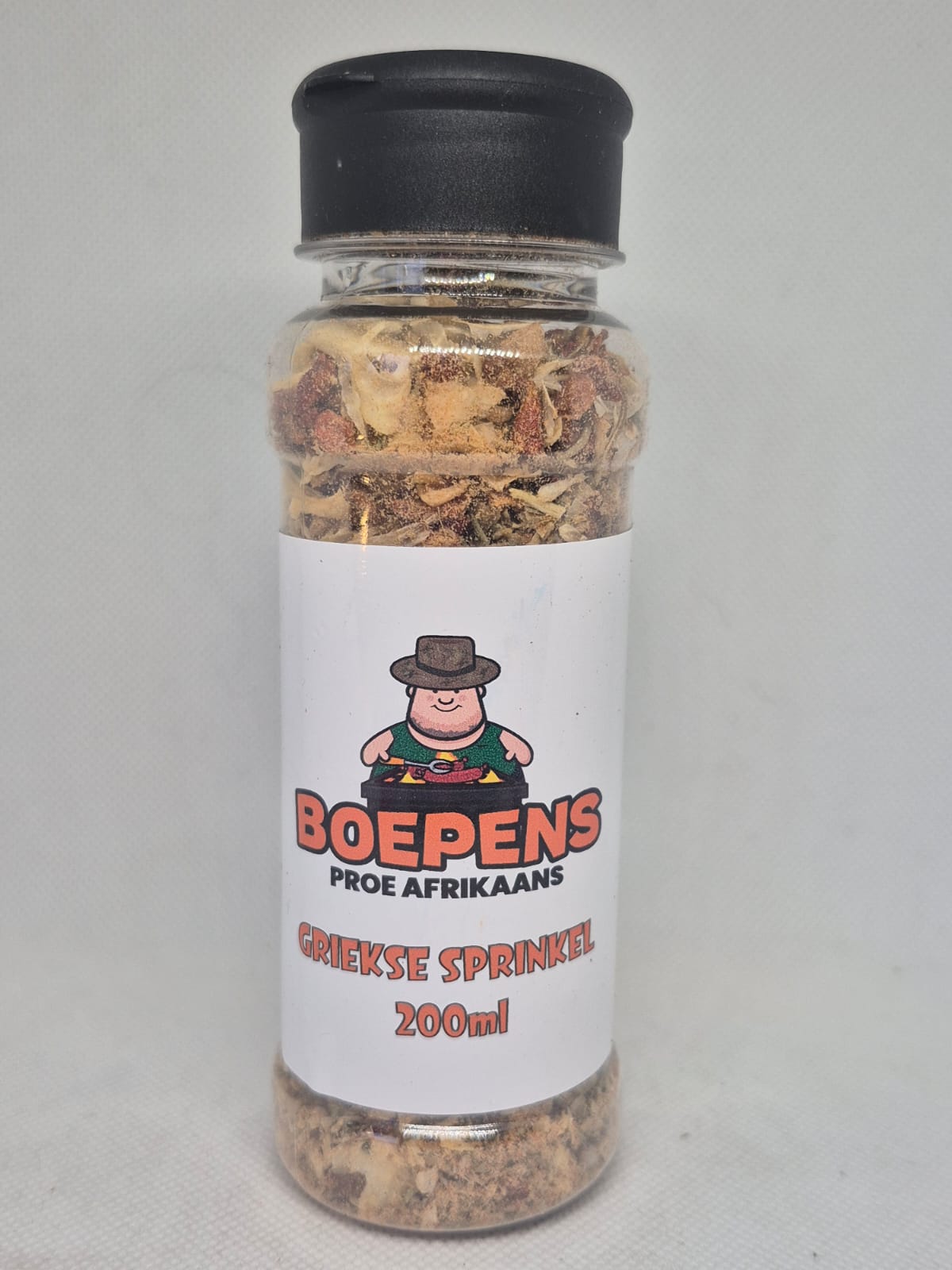 Boepens Griekse Sprinkel 200ml Ingredients: Spices, Salt, Flavourings, Flavour Enhancer (MSG)